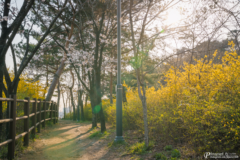 길이 너무 잘되어 있고, 개나리 외에 나무들도 있어서 산책하는 기분이 들기 시작했습니다.