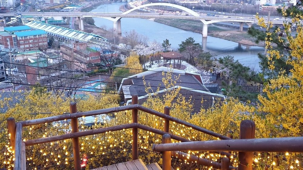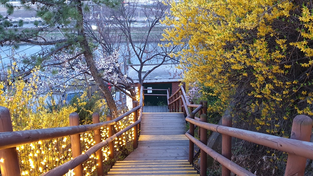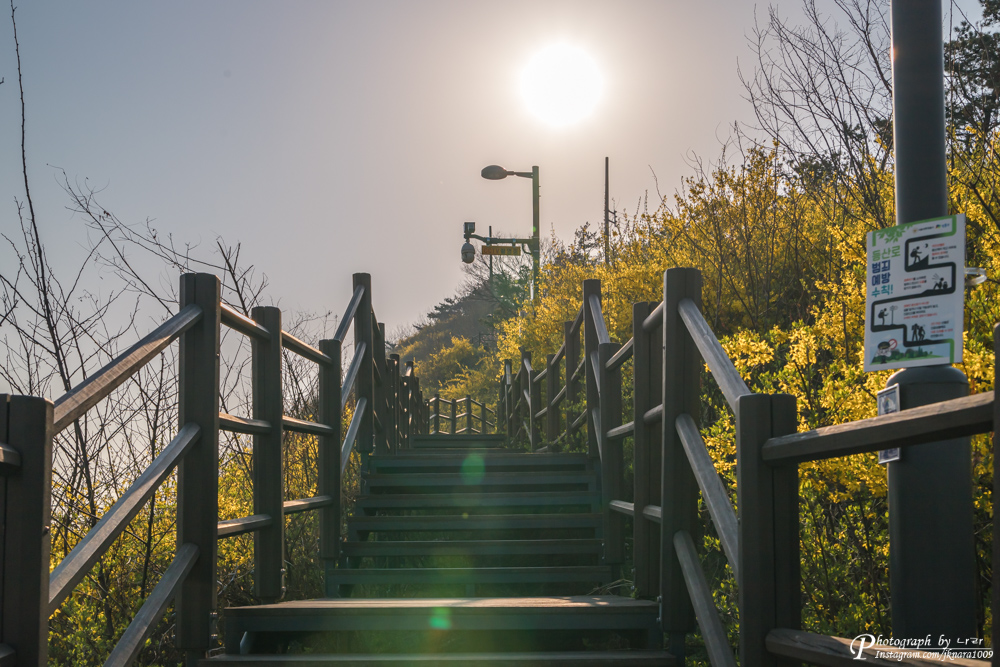 제가 응봉교에서 출발한 것이 4시 25분쯤이었는데요. 응봉산 위에 도착하니 5시 15분이었어요. 약 50분 정도 소요된 것이지만, 사진 찍고 천천히 오른 거니.. 정말 넉넉잡고 30분이면 응봉교에서 응봉산 정상까지 갈 수 있을 것 같습니다.