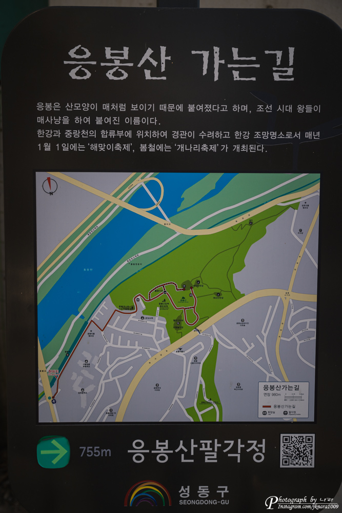 이렇게 응봉역을 통해 밖으로 나오면 응봉산 팔각정 가는 안내도가 있습니다.