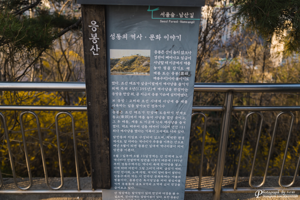 코로나 19로 개나리 축제가 취소된 응봉산에 한번 다녀와 봤는데요. 사실 입산 통제하는 건 아닐까 했는데.. 그건 아니었어요.