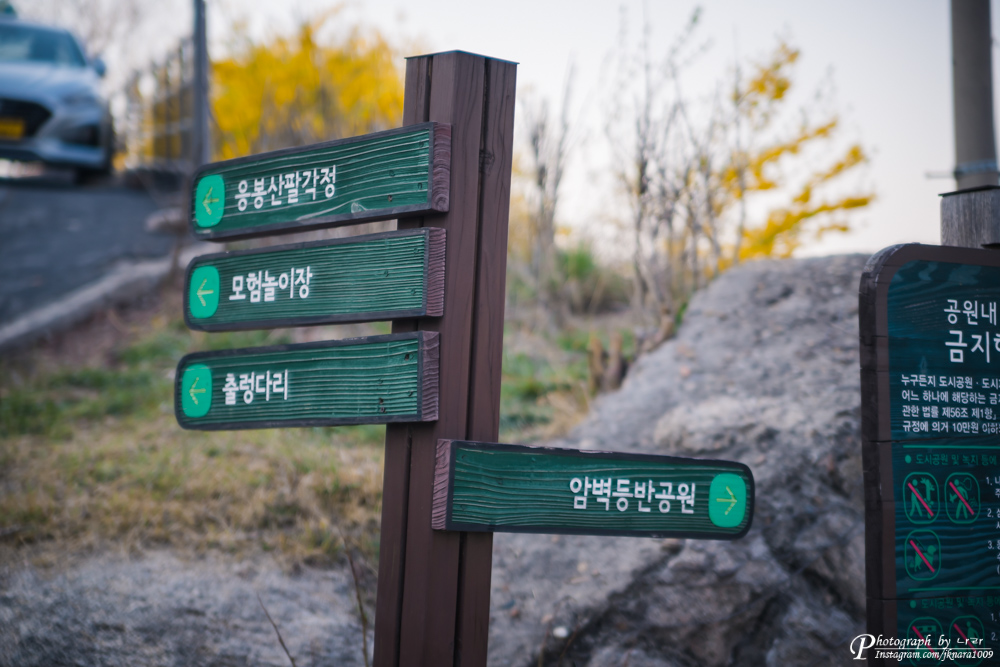 화장실 오른편으로 내려가면 암벽등반 공원이 나오고.. 왼편으로 가면 응봉산 팔각정이 나옵니다.