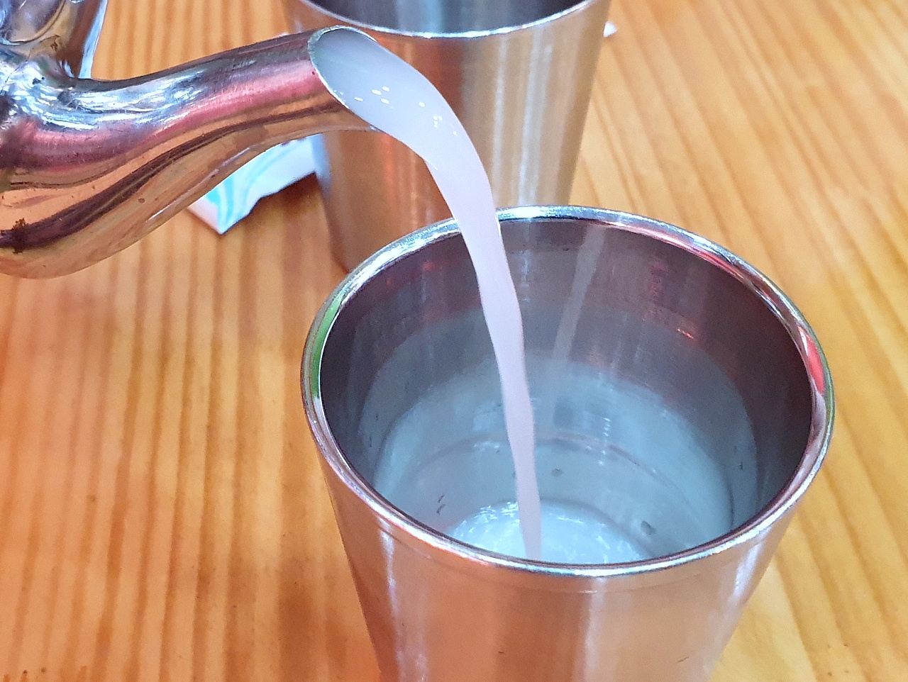 주문을 하고 나니.. 이런 육수를 주시는데요.. 냉면집에 가면 주는 그런 닭 육수인데.. 조금 연합니다.