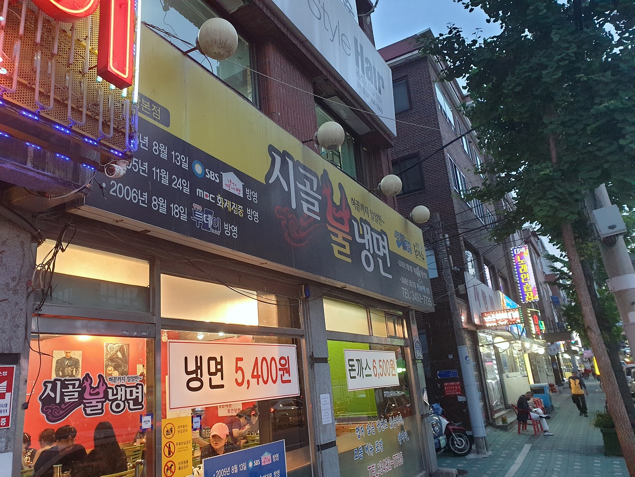 가게 정면에서 못찍고 비스듬히 찍긴 했지만.. 예전에 방송에도 나왔던 냉면집이고, 심지어 본점이에요..^^