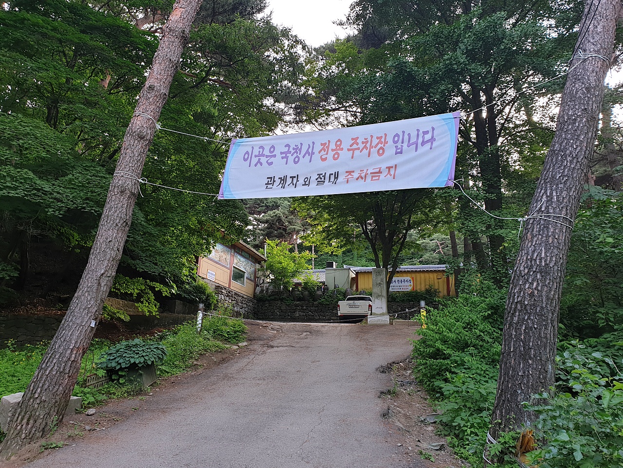 주차를 얼마나 하시는지... 관계자 외 절대 주차금지라는 현수막이 내걸려 있었어요.