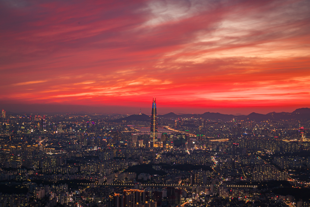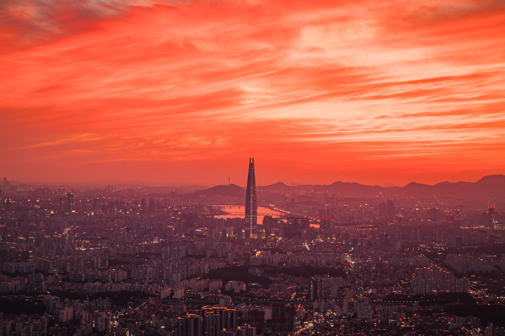 하늘빛이 갑자기 붉게 변하기 시작했습니다.. 멀리 지평선부터 시작해서 서울 전체가...