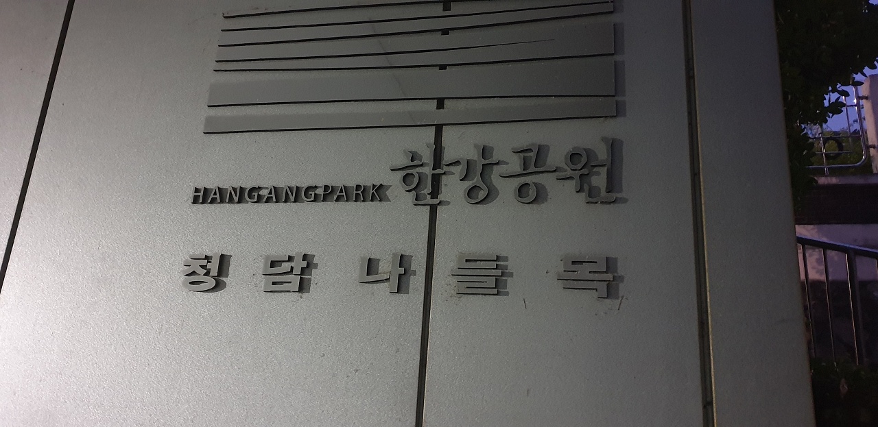 다 지워진 간판은 사실.. 봉은배수지라고 적혀 있는 건데요.. 청담 배수지공원으로 알려져 있지만, 봉은 배수지 위에 공원을 만든 것이라고 보면 됩니다.