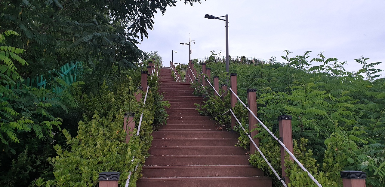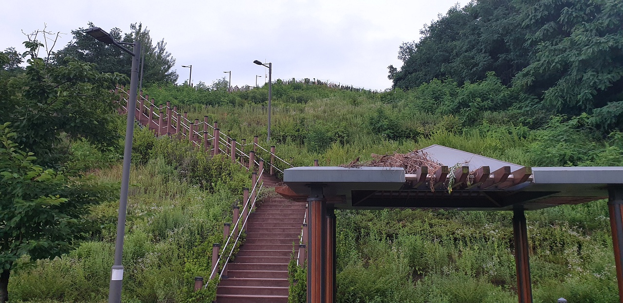 이렇게 걸어 올라오면 배수지 건물 지붕 위가 공원이고, 그 옆으로 계단이 있습니다.