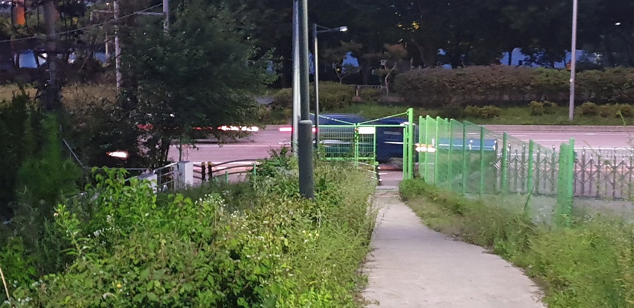 길을 올라오면 바로 올림픽대로가 나와 깜짝 놀라실 수 있지만, 위 길을 올라 바로 오른편으로 돌면 철망으로 된 출입문이 있습니다.