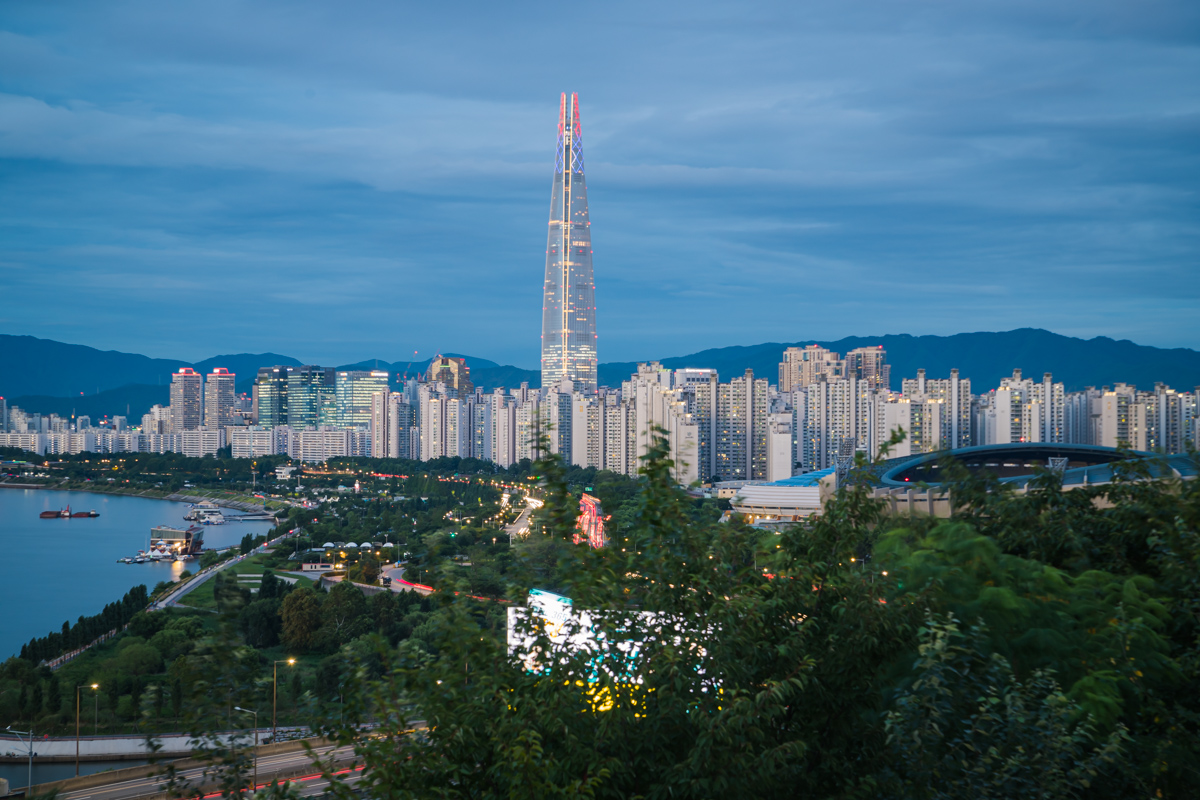고층 아파트들과 롯데월드타워가 빛을 내기 시작했지요.