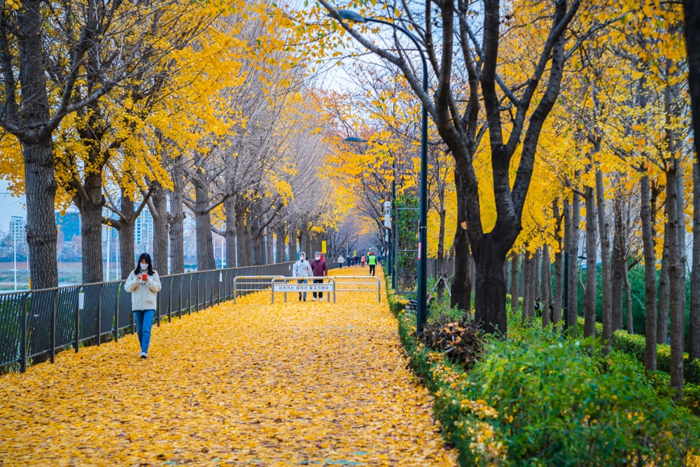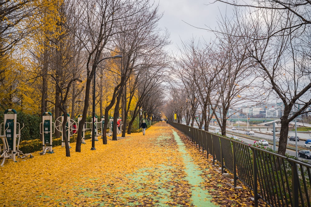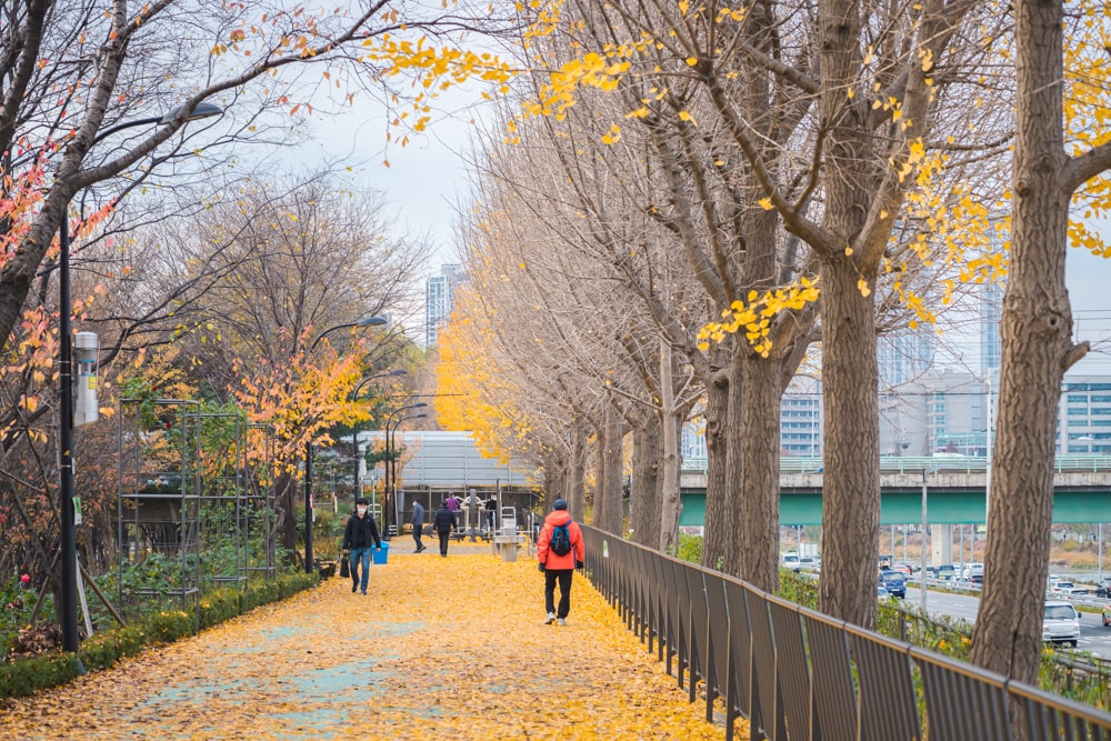 제방길에 올라 동부간선도로를 바라보면 멀리 나무가 노랗게 물든 곳이 보일 거예요..