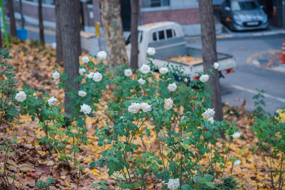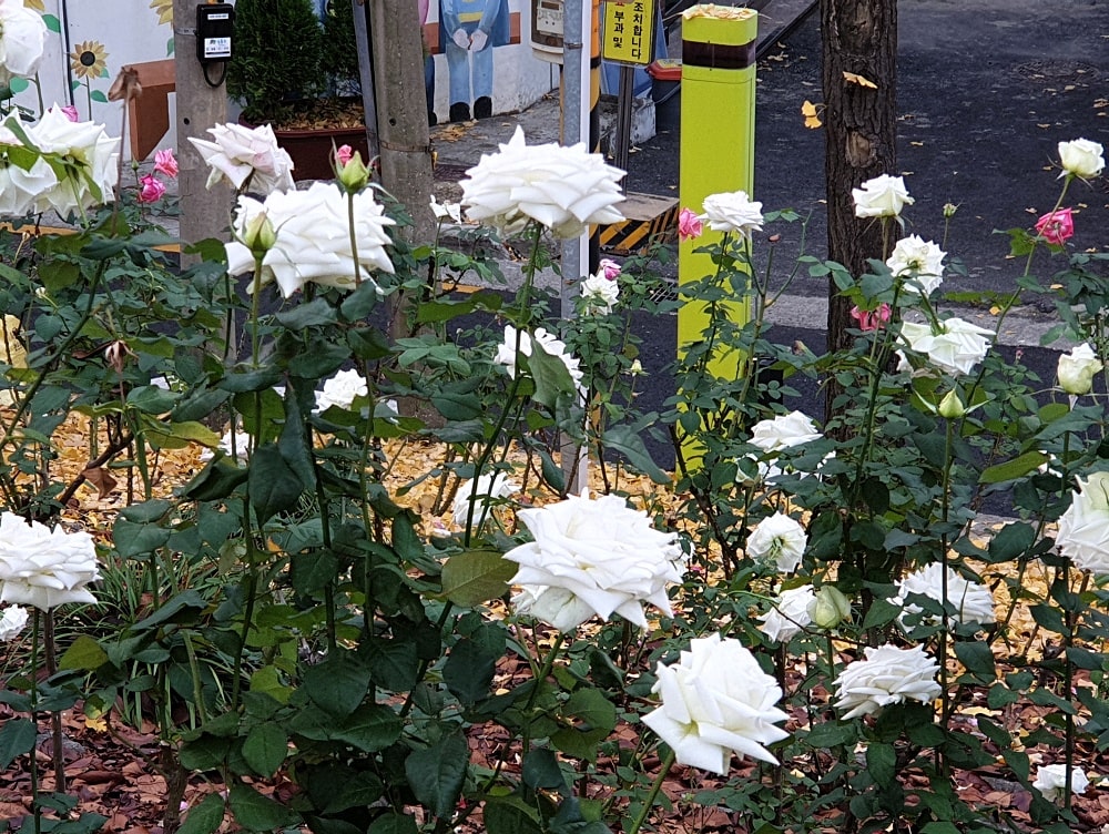 가을비가 내린 후 추운 날씨임에도 장미꽃이 피어 있는 게 신기했어요.