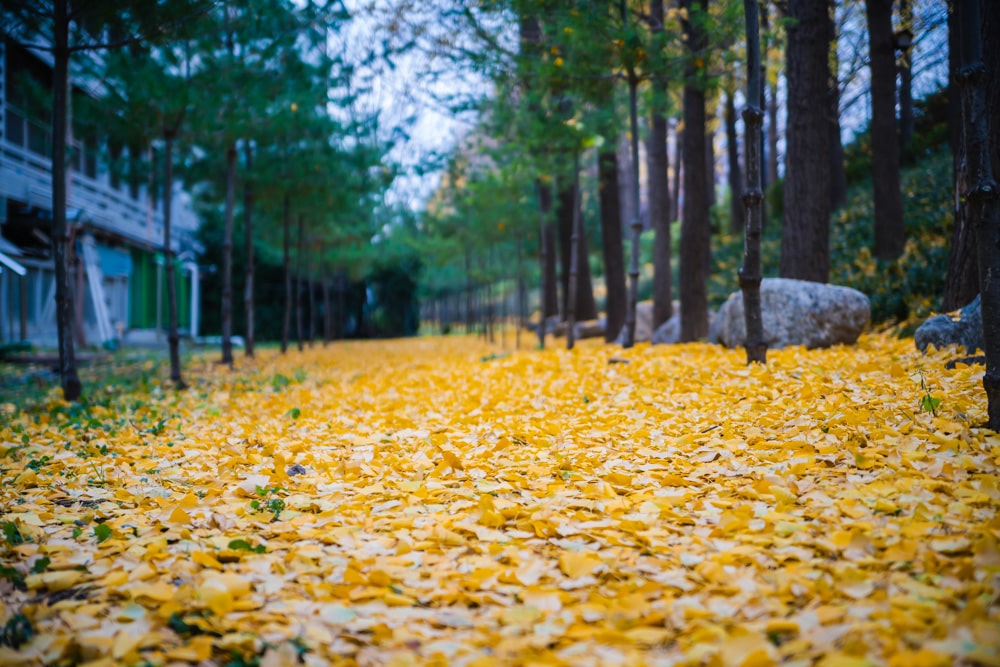 은행잎이 바닥을 온통 노랗게 물들여놓았더라고요.