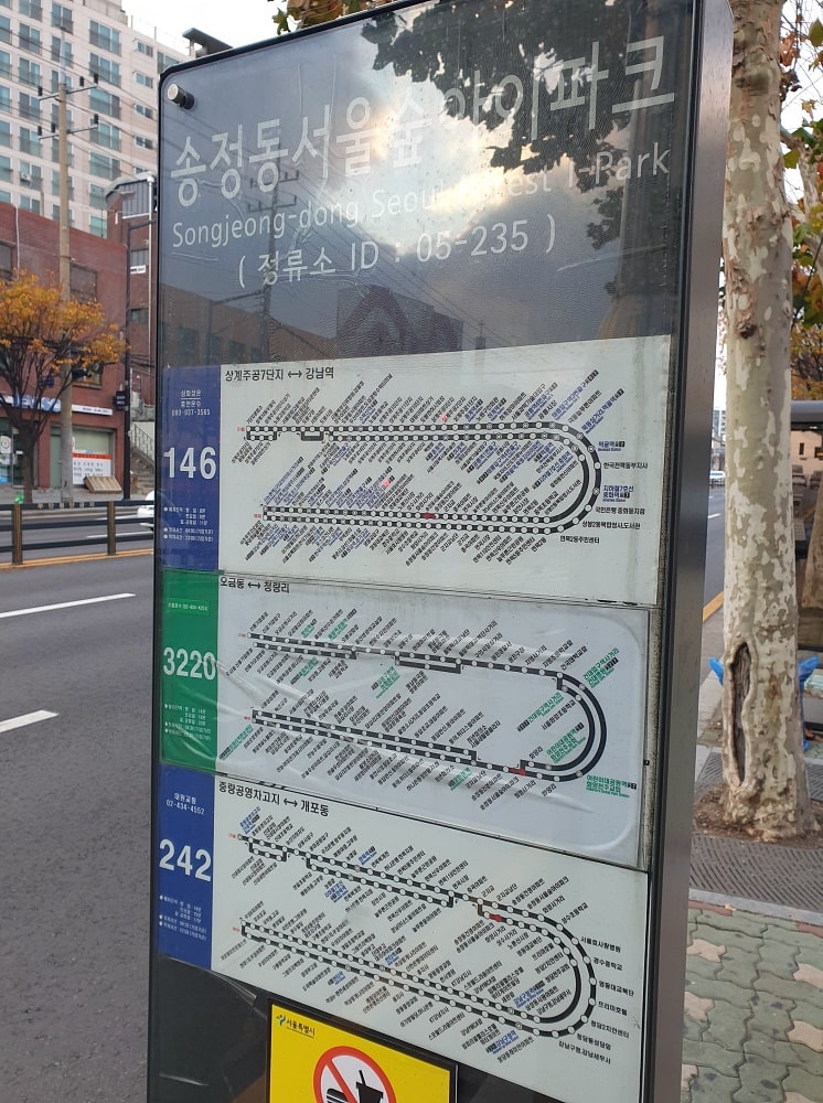 버스 노선은 146번, 242번, 그리고 3220번이 있습니다.
