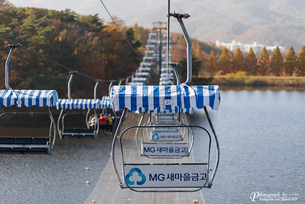 과천 저수지 위를 리프트로 지나가게 되는데요... 그 풍경이 정말 끝내줬습니다.