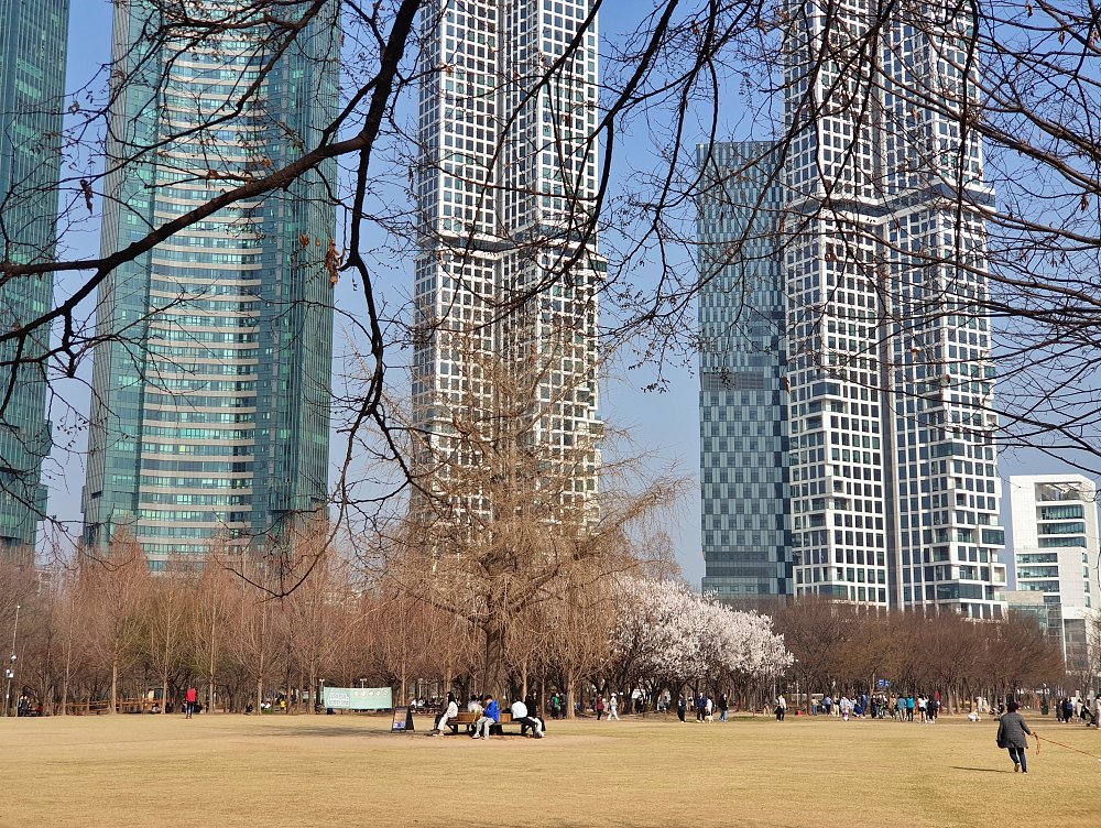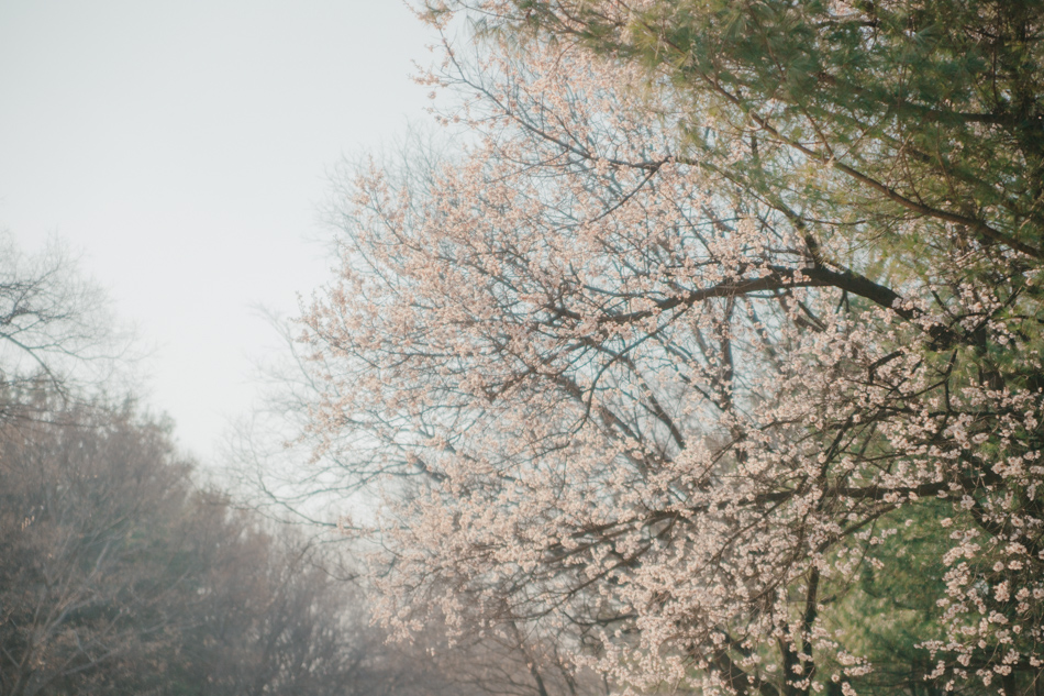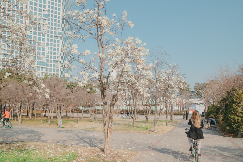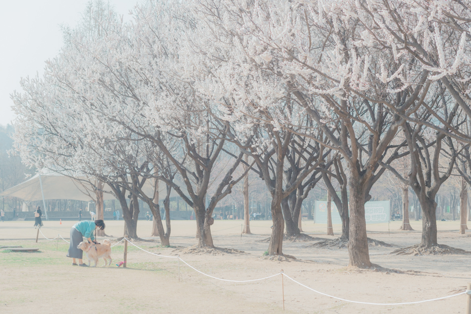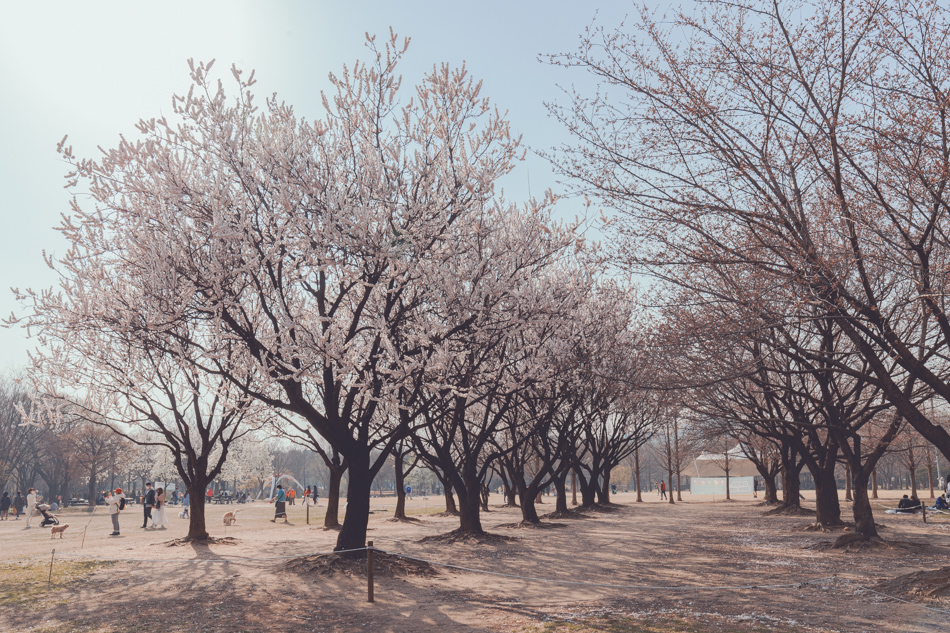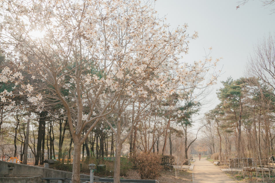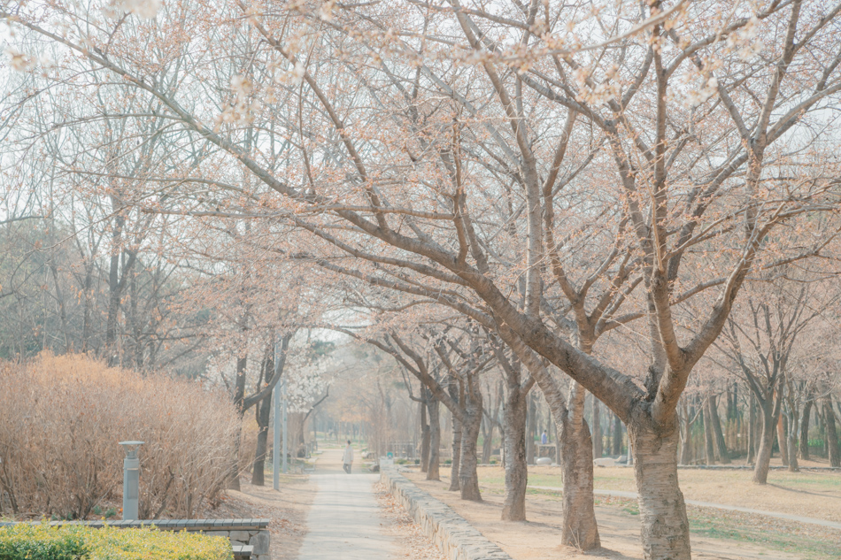 설렘 공원을 배경으로 나뭇가지에 벚꽃들로 가득 찼을 때.... 이곳에서 인생 샷 찍으면 환상적이겠다는 생각이 들었어요.