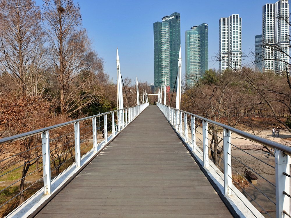 서울숲 뒤로 높다란 건물들... 갤러리아 포레 주상복합 아파트와 아크로 포레스트 주상복합 아파트입니다. 정말 높죠??