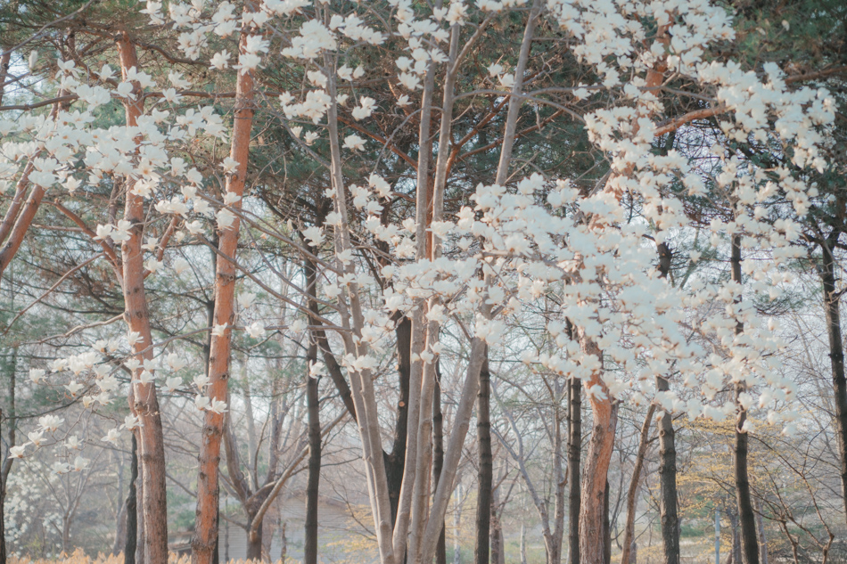 주변 나무들은 아직 앙상한데, 혼자 이렇게 빨리 하얗게 꽃을 피우니.. 마치 나무에 하얀 눈이 내려앉은 느낌도 들어요.