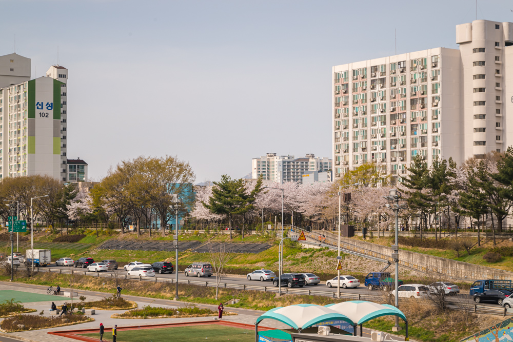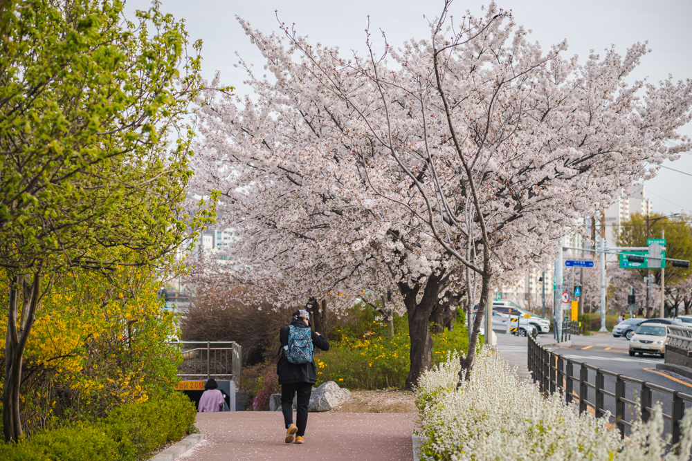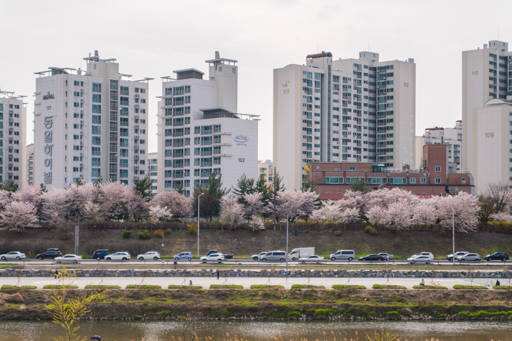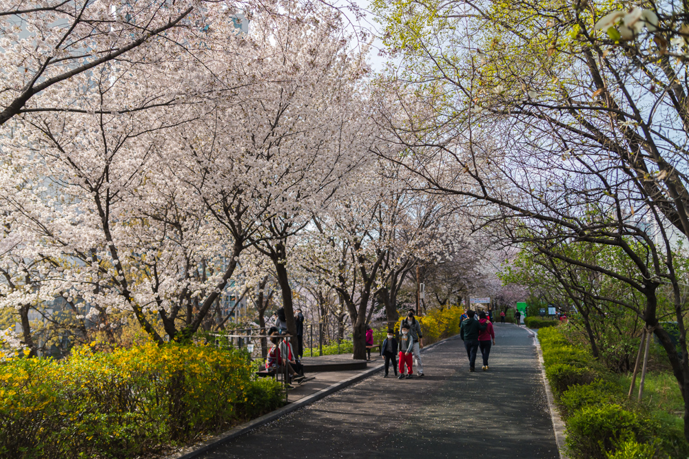 이맘때 즈음 서울 동부간선도로를 다니다 보면 도로 옆 제방 위로 벚꽃이 피어 있는 모습이 긴 구간이 있습니다.