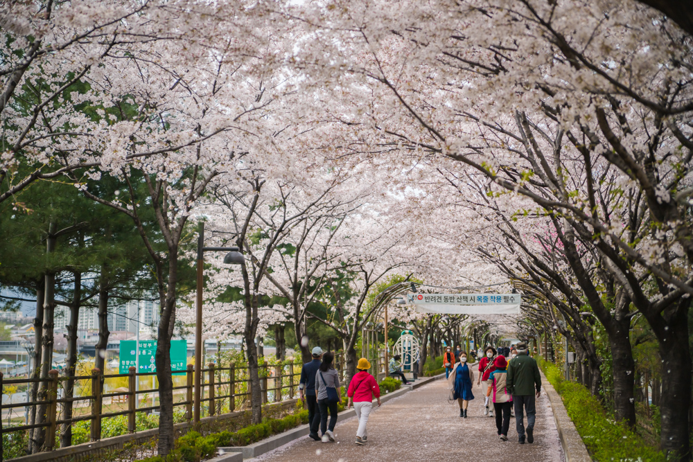 고개를 들어 하늘을 보면 온통 연분홍 벚꽃으로 가득했어요.