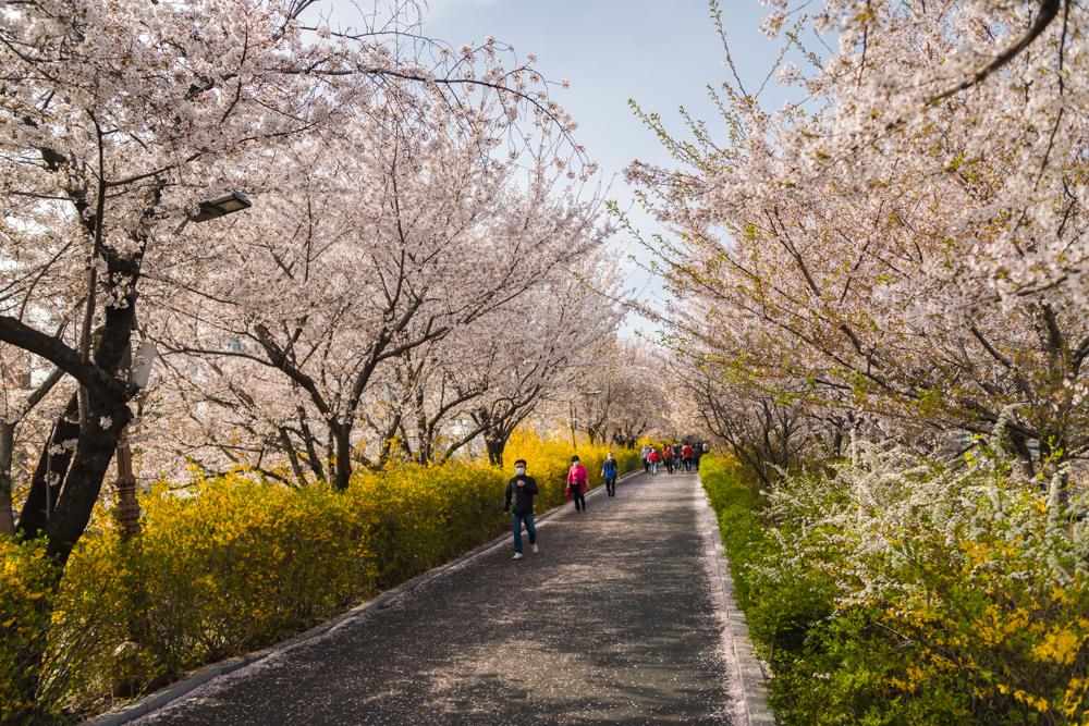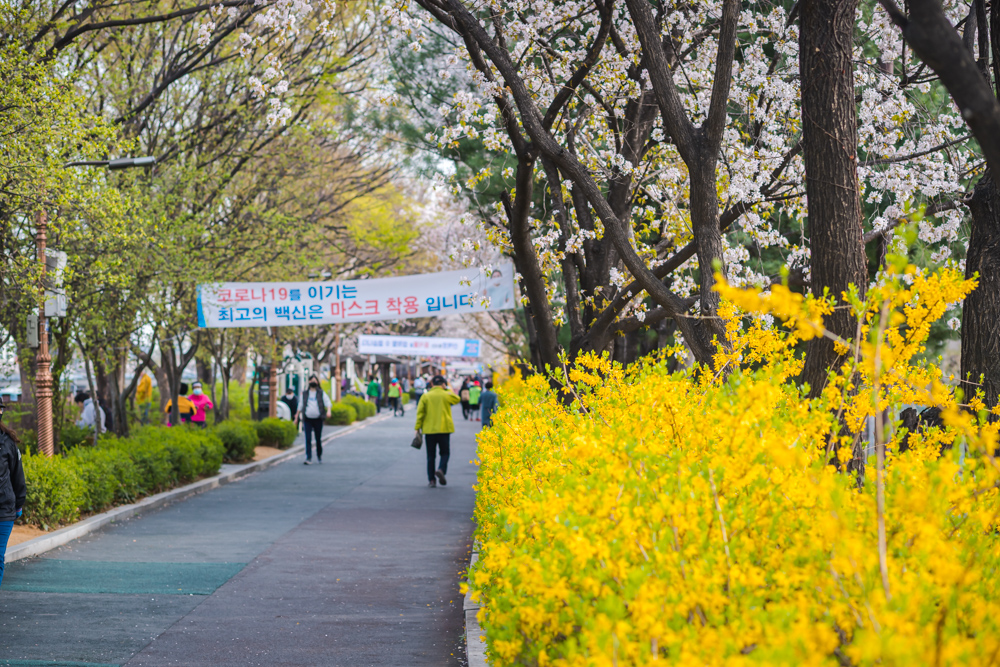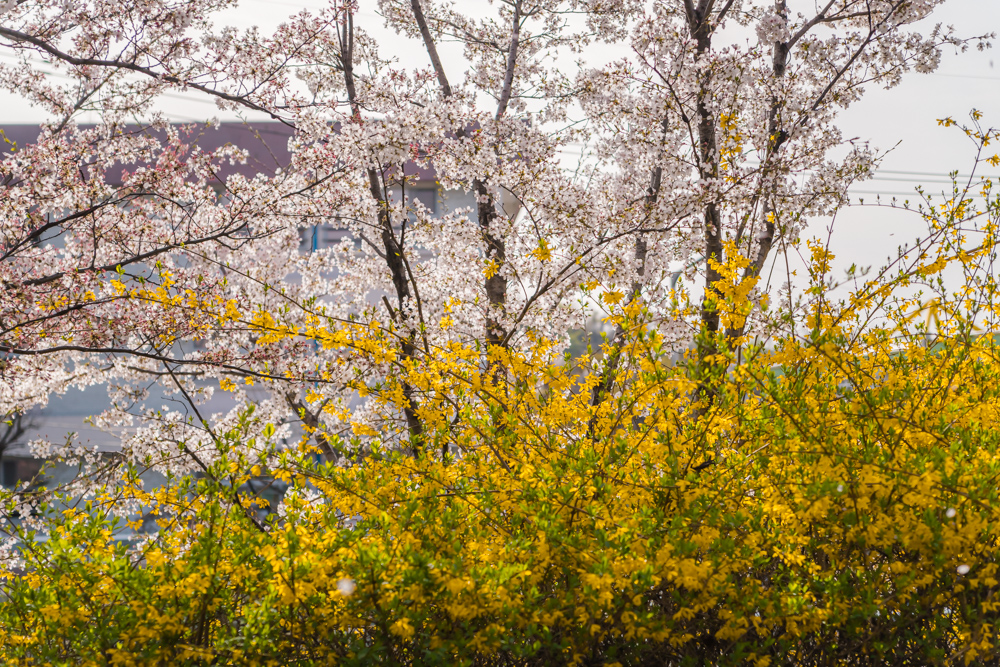 가로변으로 개나리도 심어져 있어서, 벚꽃과 함께 봄기운을 전하고 있는데요..