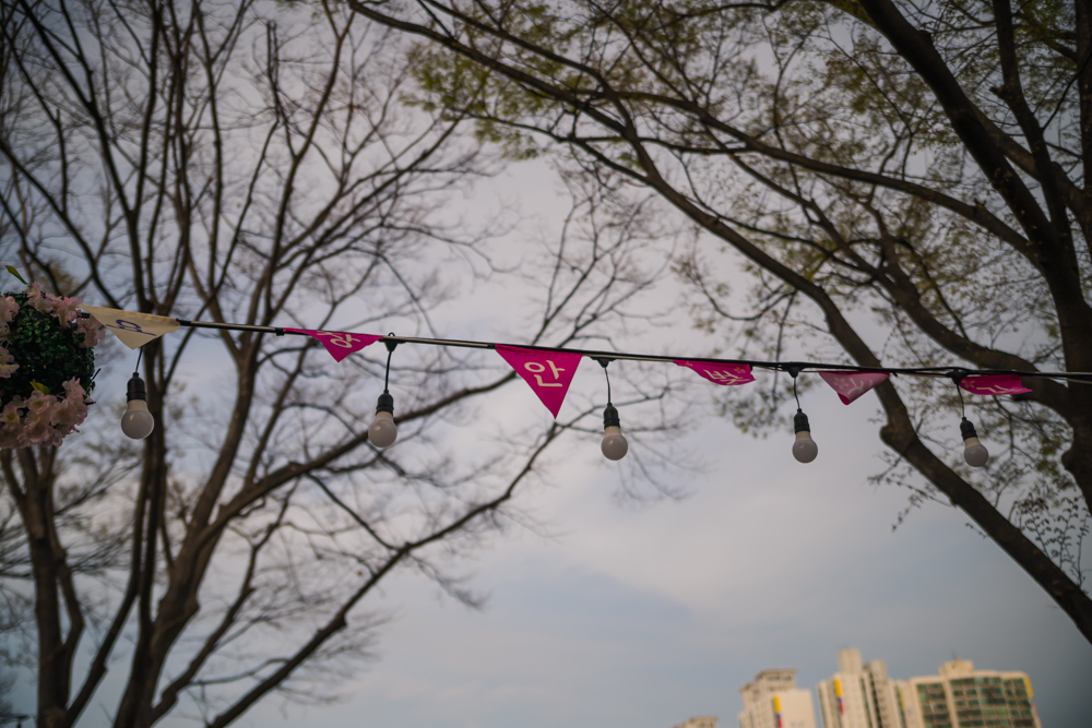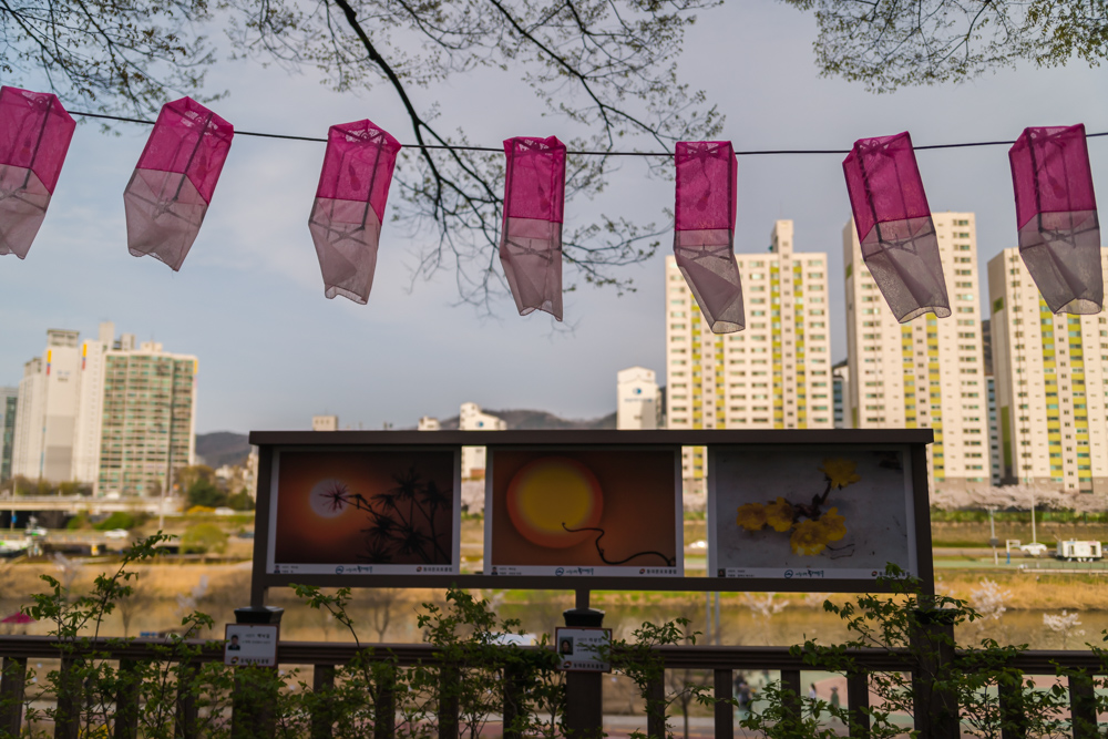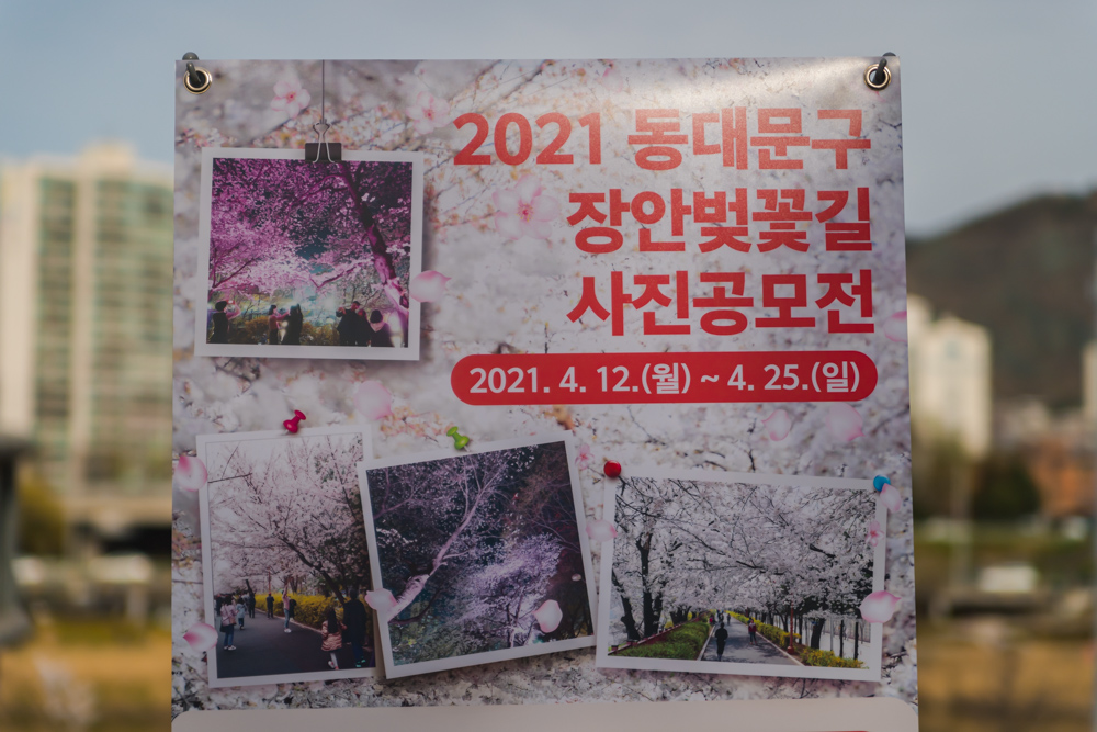이곳에 오니 장안동 벚꽃 안길 축제 기운이 들었습니다. 공중에 꽃과 깃발들로 행사 분위기가 나기도 했거든요.