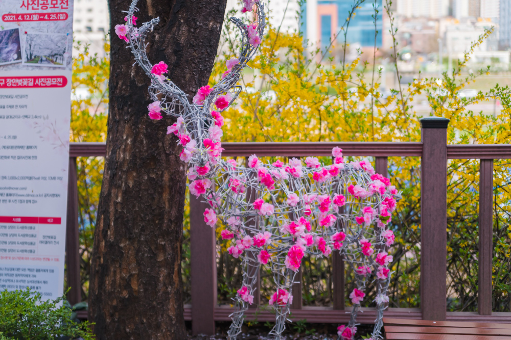 이 길을 장안 벚꽃 안길 이라고 해놓고서는 이런 조형 배 경물에는 장안 벚꽃길로 적혀 있어서 조금 헷갈리긴 합니다.