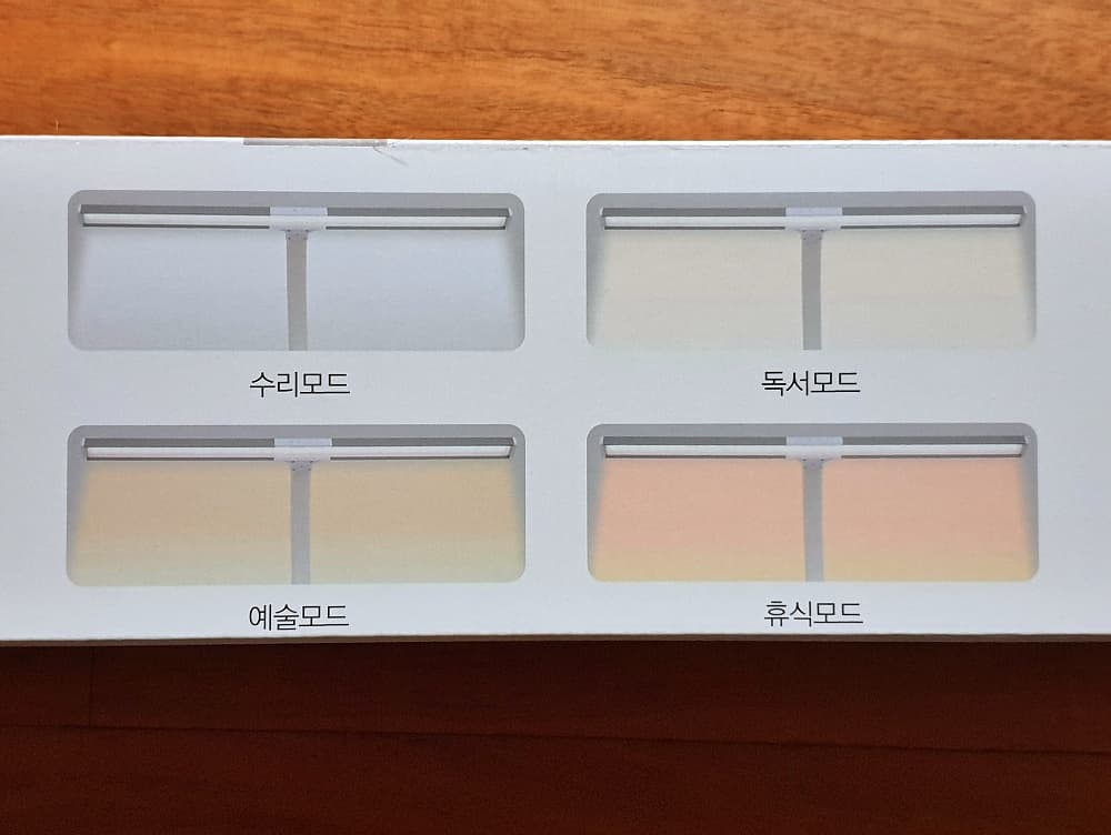독서모드는 주백색에 주광색이 살짝 들어간 것이고, 예술 모드는 주광색에 주백색이 살짝 들어간 것으로 보입니다.