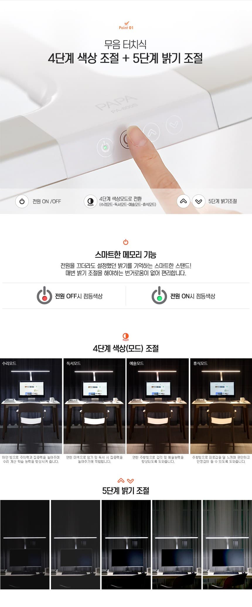 그리고 한번 설정한 색상과 밝기는 메모리화 되어서 껐다 켜도 다시 세팅해야 하는 번거로움도 없고요..