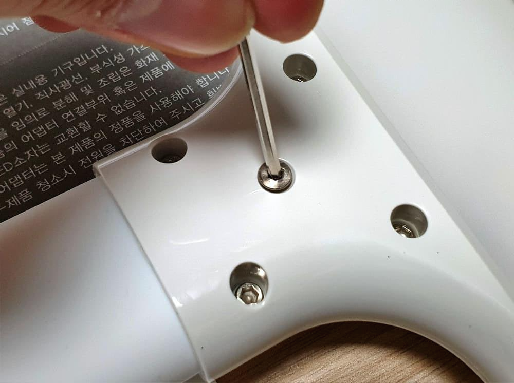 그리고 동봉된 나사와 육각 랜치를 이용해서 고정시켜 줍니다.