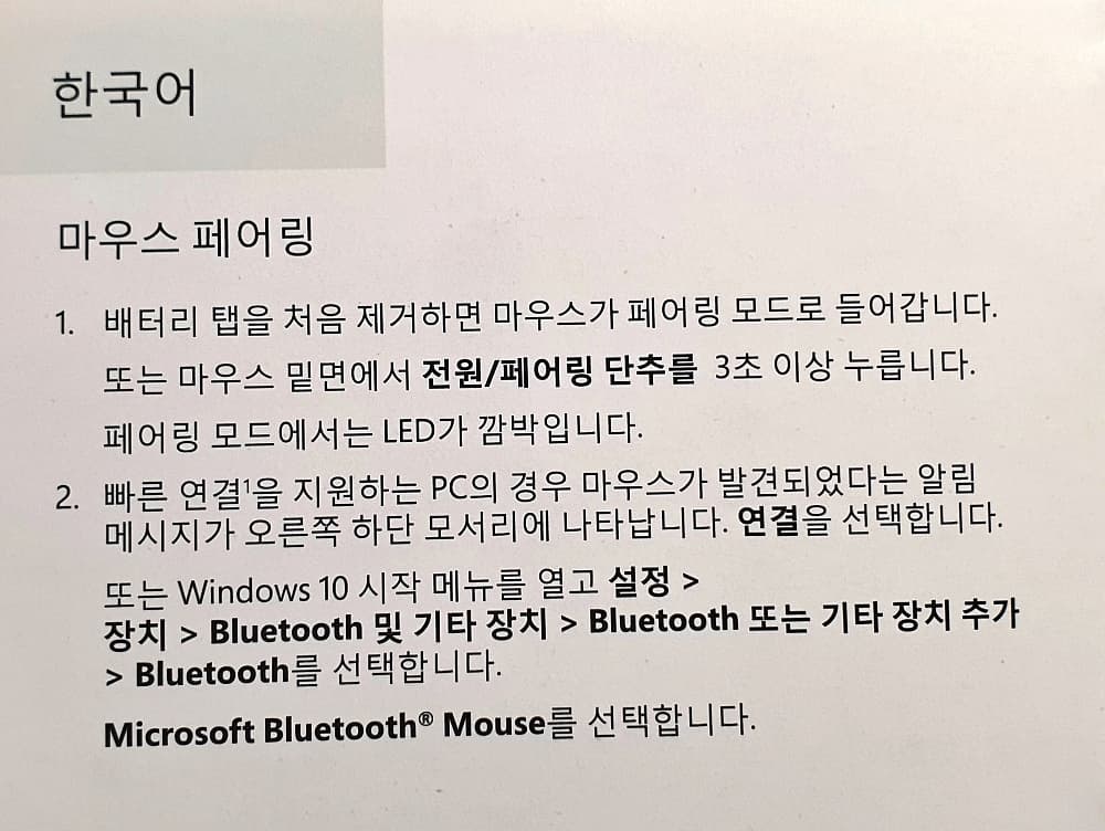 마우스 페어링 하는 방법과 마우스 청소 사용지침 등이 있습니다.
