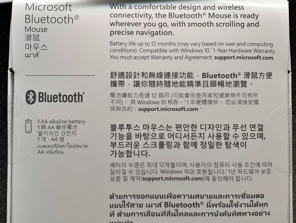 마이크로소프트 블루투스 5.0 마우스의 겉 포장지만 보면..... 중국풍이 물씬 납니다.