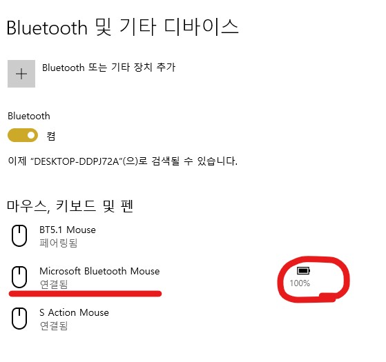 페어링을 해보니.. 신기하게도 마우스의 건전지 잔량 표시가 됩니다. ^^