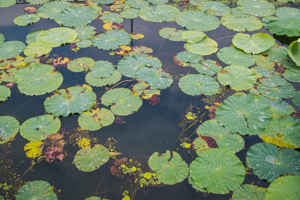 연잎에 물방울이 고슬고슬 맺혀 있는 것이 비가 왔던 날씨를 짐작케 합니다.