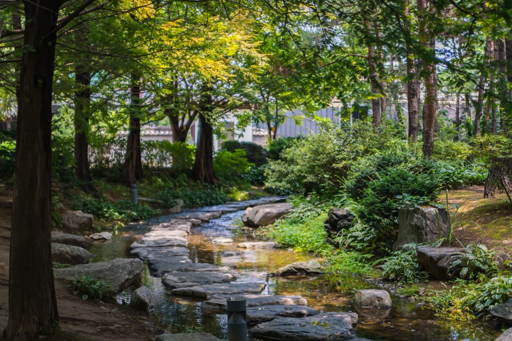 정문으로 들어오면 이렇게 멋진 숲길과 개울물의 돌다리 걸을 수 있어 잠시나마 힐링할 수 있었네요.