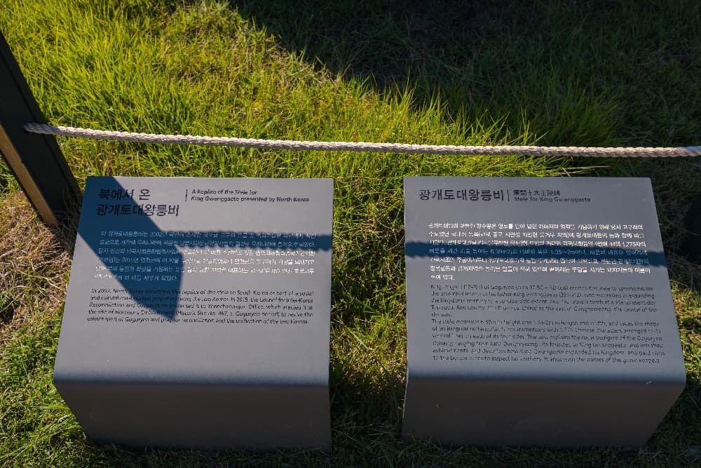 북한에서 광개토대왕릉비를 본떠서 남한에 보내준 것을 이곳에 둔 것이라고 하네요.