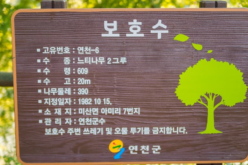 이 두 그루의 나무는 느티나무로 수령이 무려 600년이 넘어 보호수로 지정되어 있습니다.