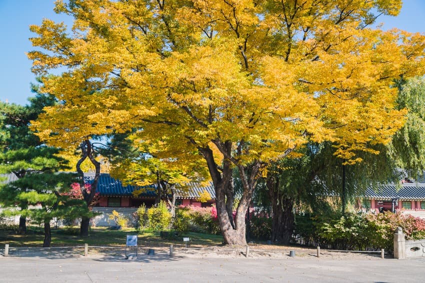 돈화문을 지나면 멀리 노란색으로 물든 나무가 눈에 띕니다.