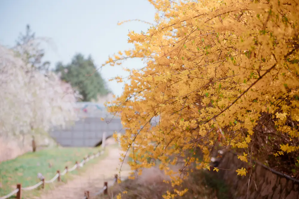 무엇보다 가장 핫한 곳은 현충천 길의 노란색 개나리꽃과 수양벚꽃나무와 육사 7기 특별 동기생 추모탑 주변의 거대한 수양벚꽃나무 라 할 수 있습니다. 그리고 이곳에 진한 분홍색 겹벚 한그루가 사람들의 시선을 끌고 있습니다.