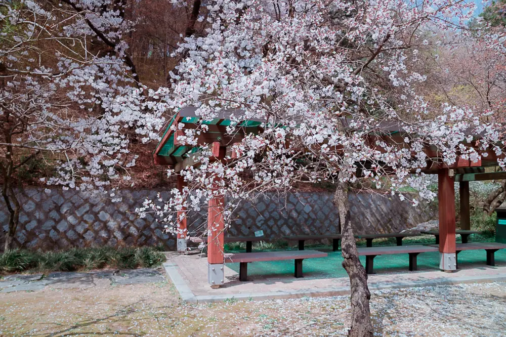 아마도 다가오는 주말 전에 벚꽃잎이 많이 떨어질 것 같습니다. 늦어도 목요일 전에 가보시는 걸 추천합니다.