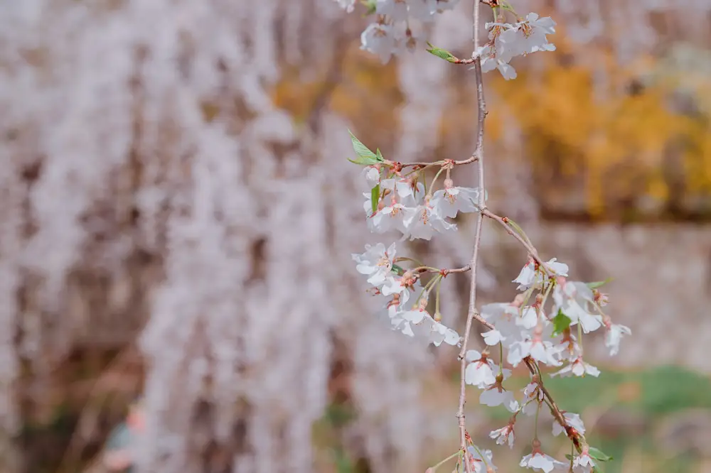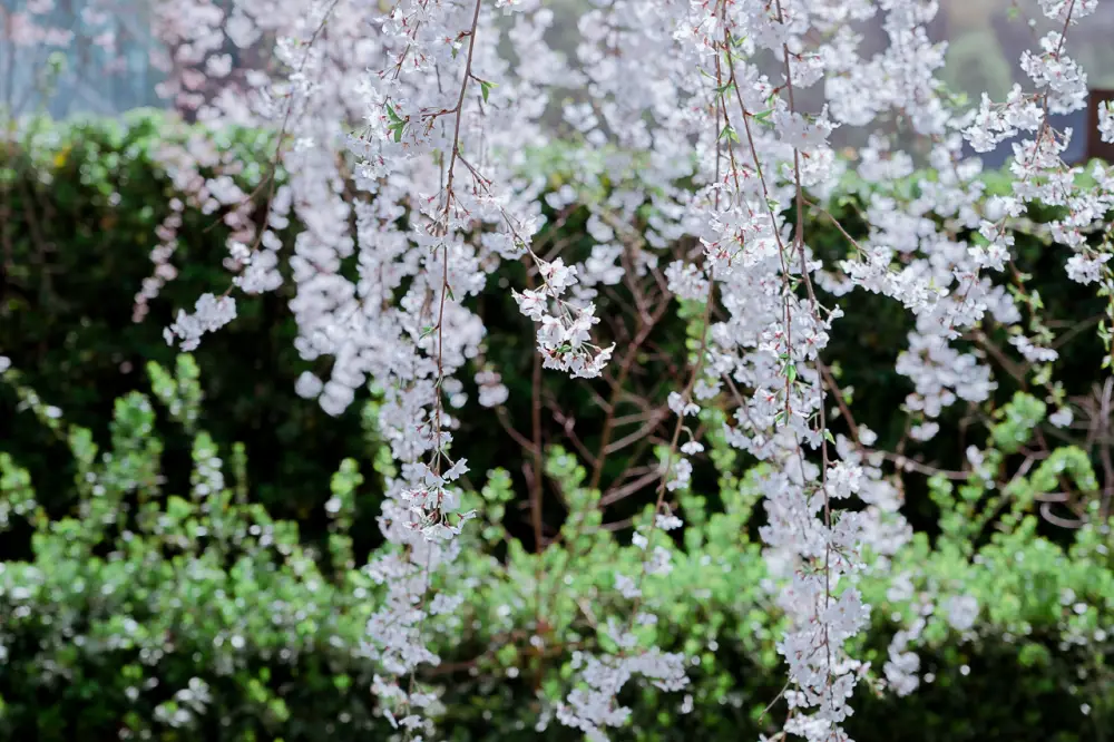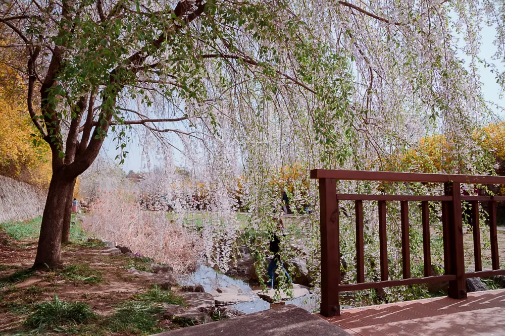 벚꽃이 나뭇가지 따라 아래로 늘어지면서 피어나는 수양벚꽃은 단연 사람들에게 인기가 많습니다.