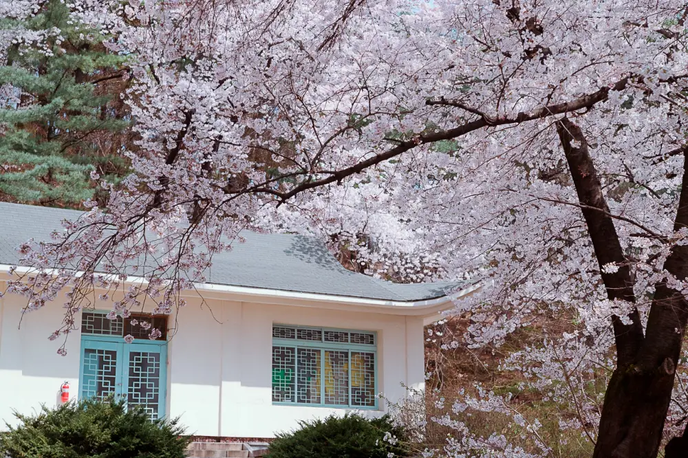 정문 충성 분수대를 기준으로 우측의 종합민원실 및 상황실과 청사 주변, 좌측의 만남의 집과 구름다리, 화장실 주변에서 풍성하고 화려한 벚꽃들을 관찰하실 수 있습니다.