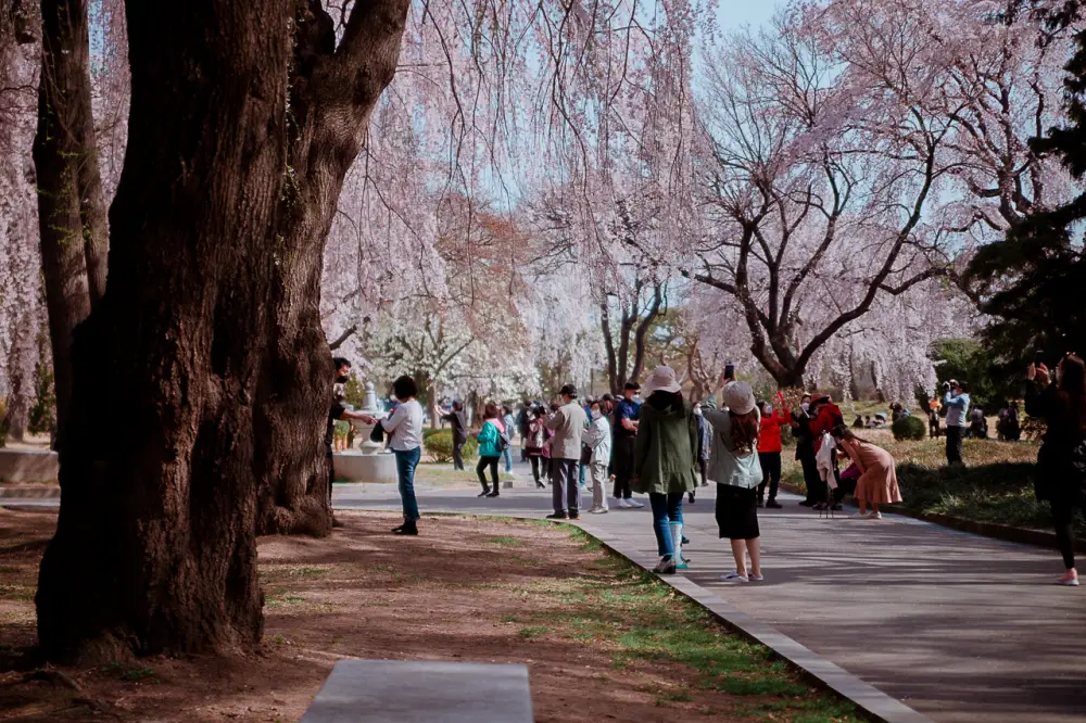 무엇보다 벚꽃이 사람 어깨까지도 내려올 정도로 꽃과 같이 사진을 찍을 수 있기 때문입니다.