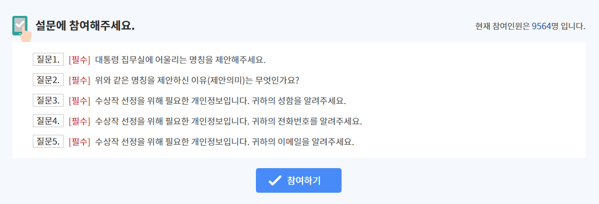 내가 지은 이름이 대통령 집무실 명칭이 되고 역사에 남게 된다면 상금보다 더 큰 의미가 있지 않을까요?