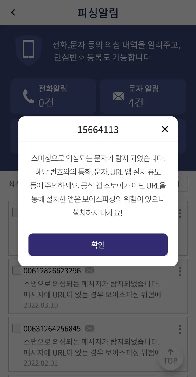 어쩌면 이 피싱 탐지 앱이 없었더라면.... 문자상의 내용을 정부시책으로 은행에서 연락이 온 것인 줄 알았을 것입니다.
