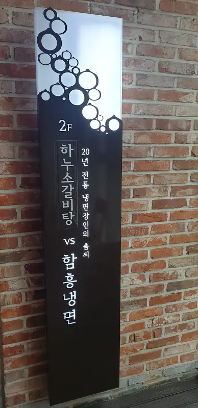 식당 입구에 하누소 갈비탕 vs 함흥냉면이라는 인상 깊은 입간판이 있습니다.