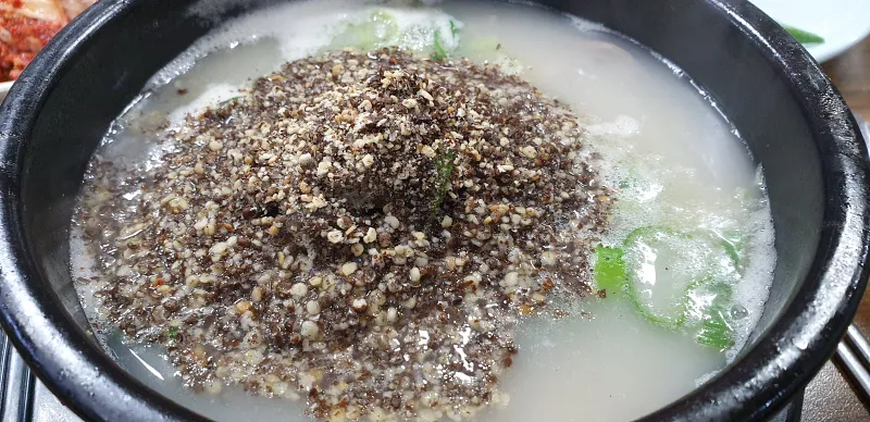 그리고 들깨가루를 큰 숟가락으로 세 번...