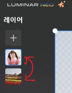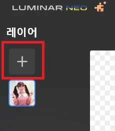 루미나르 네오 왼편에 보면 레이어 아래 [** + **] 아이콘이 있습니다. 이를 클릭해 봅니다.
