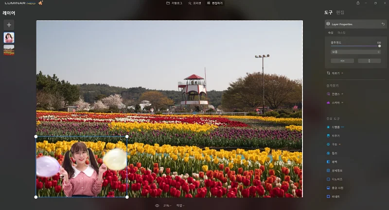 이것은 Luminar Neo만의 자랑이기도 한 레이어 기능이기도 합니다.
