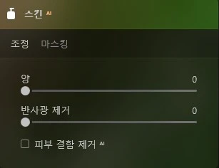 스킨 AI를 통해서는 피부의 잡티도 AI 기능으로 제거할 수 있고, 번들번들한 피부를 메트 하게 바꿀 수도 있습니다.