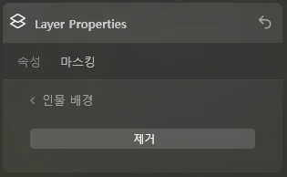 우측 사이드바 도구 메뉴에서 맨 위쪽 [**Layer Properties**] 선택하면 메뉴가 펼쳐지는데, 속성이 아닌 마스킹으로 전환을 합니다. 그러면 [**인물 배경**] 이 보일 것입니다.
